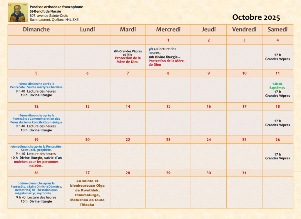 Paroisse francophone de l'Église Orthodoxe en Amérique | Montréal